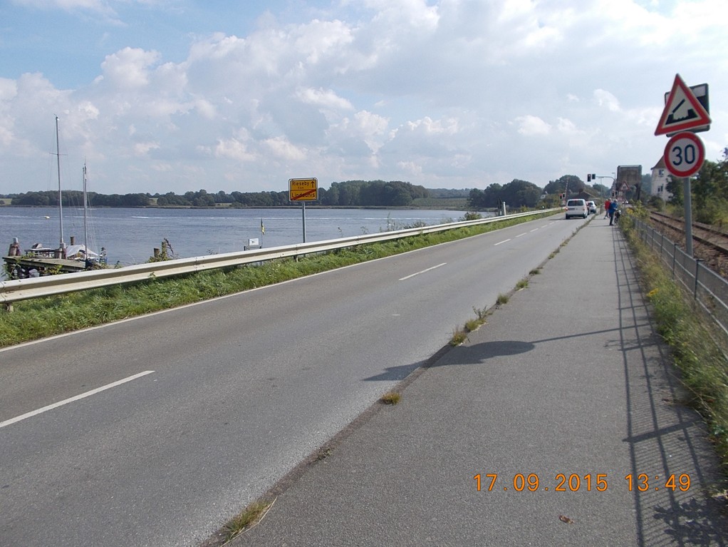 146 dojíždím ke zvedacímu železničnímu mostu v Lindaunis
